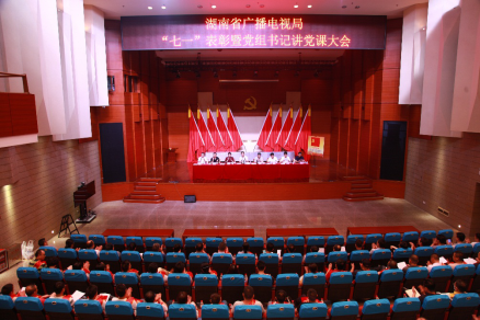 7月3日下午,省广播电视局召开 “七一”表彰暨党组书记讲党课大会。省委宣传部副部长、局党组书记、局长张严带领全体党员重温入党誓词并讲党课,局党组副书记、副局长毛良才主持会议,在家局领导周爱国、蒋强先、王国庆、刘章宇、杨国兴、王承英出席。
